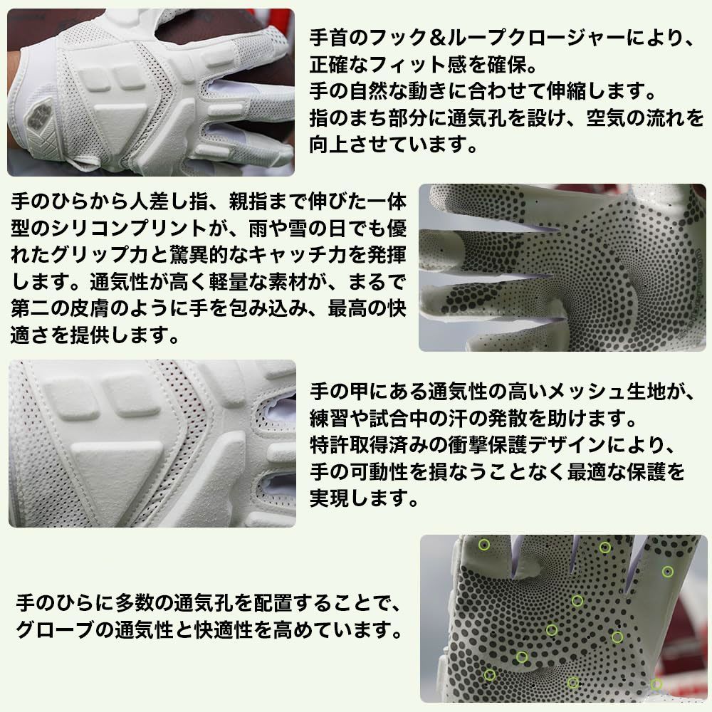 最高の通気性と快適性: 手の甲にメッシュ素材を使用しており、空気の流れを最適化し、激しいプレイ中でも手を涼しく快適に保ちます。
