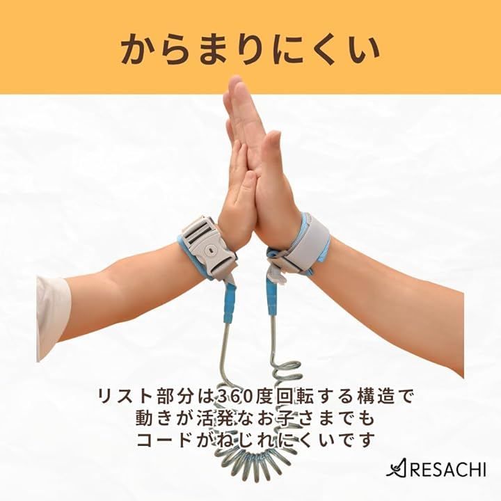 「360度回転でからまりにくい設計」リスト部分は360度回転する構造になっており、動きが活発なお子さまでもコードがねじれにくい仕様です。