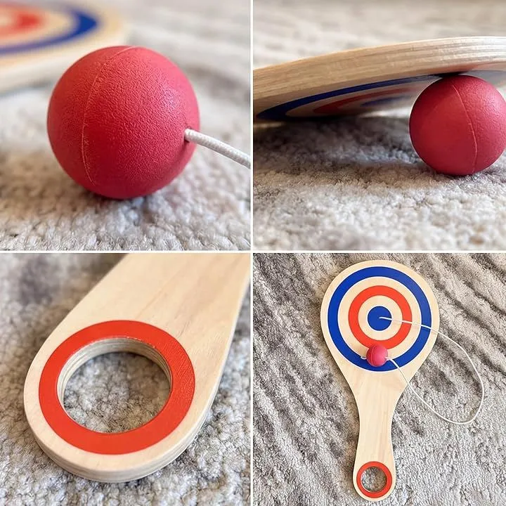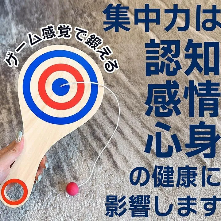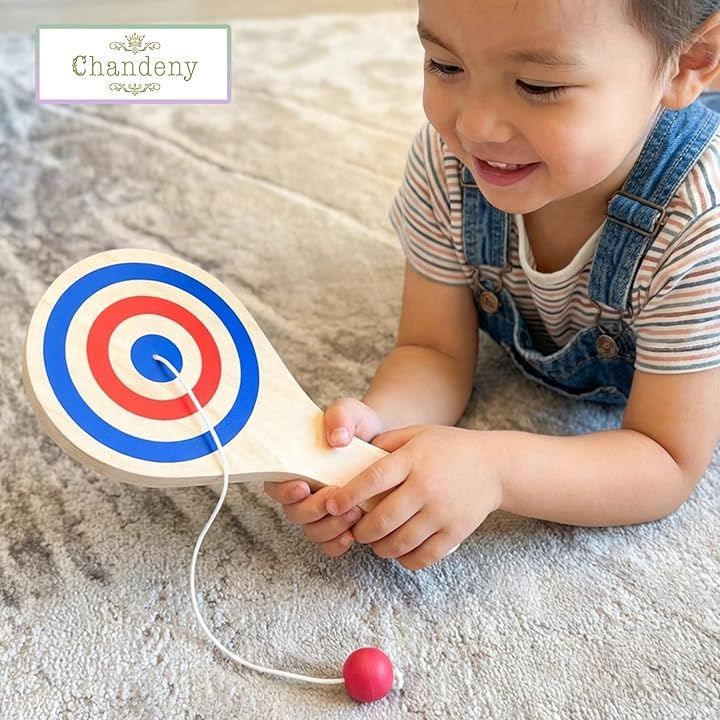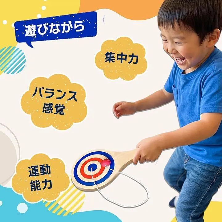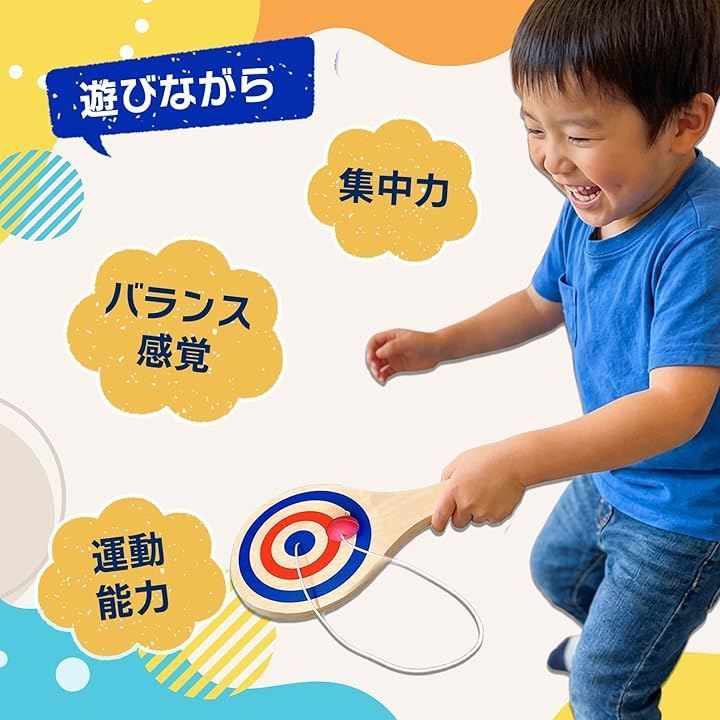 「手と目を使った遊びに」 紐付きパドルボールは、ボールを打って戻す動作を繰り返すことで、自然と手と目を同時に使う遊びが楽しめます。