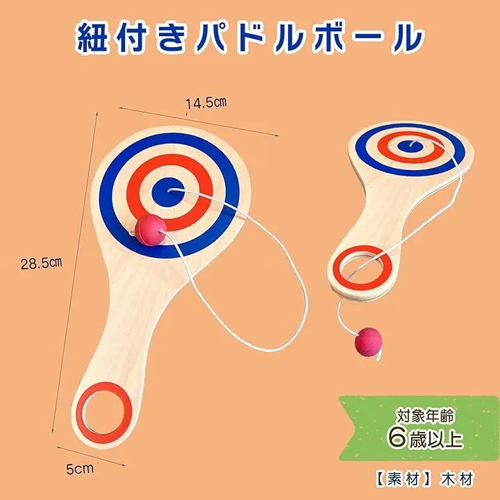 「商品内容」紐付きパドルボール 「カラー」ウッド 「サイズ」長さ:28.5cmx14.5cm(持ち手:5cm) 「素材」木材