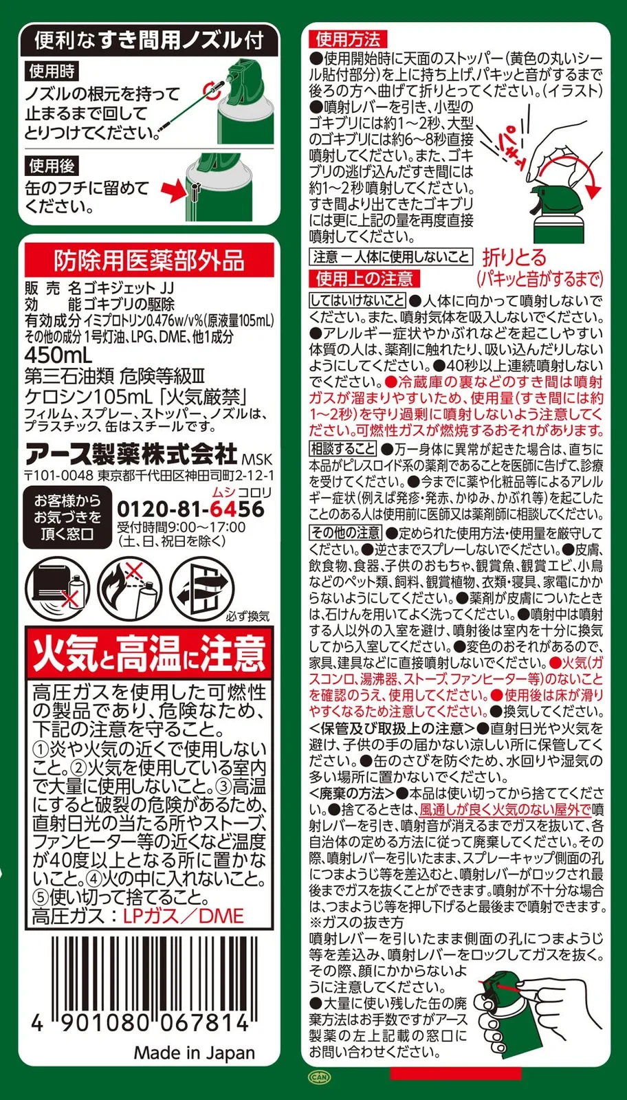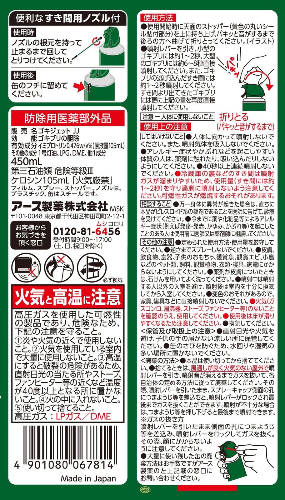 ●万一身体に異常が起きた場合は、直ちに本品がピレスロイド系の薬剤であることを医師に告げて、診療を受けてください。
