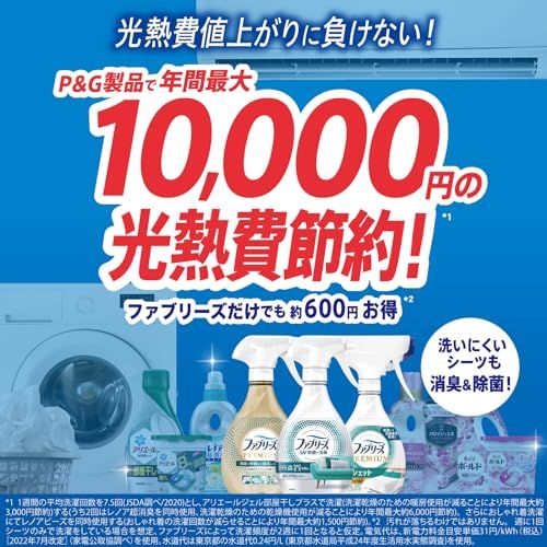*消費者の平均スプレー時間に基づき、消臭、シワ取りする工程を洗濯と比較。汚れを落とすわけではありません。**特定の菌・エンベロープ型ウイルス・シワの条件下で試験。全ての菌・ウイルス・シワに同様の効果が得られるものではありません。シワ除去はコットン衣類で、製品不使用時との比較で検証。効果は衣類の素材と使用状況によって異なる場合があります。