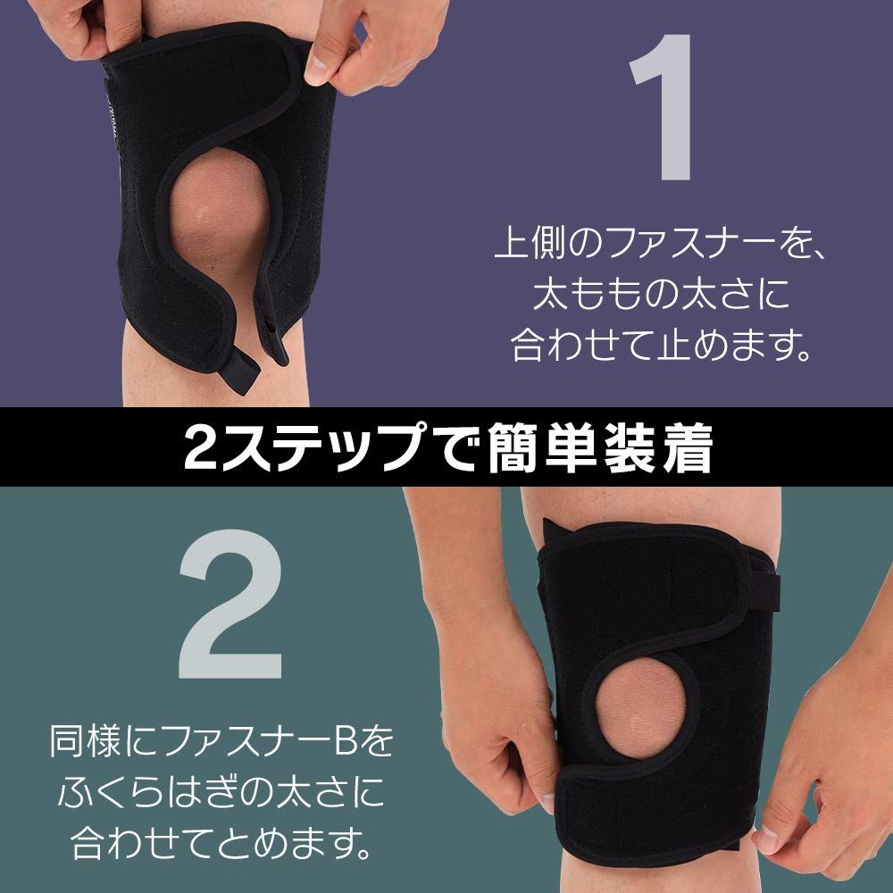 動きに合わせて伸縮素材が伸び縮みするので、ずれを防止して膝をしっかり固定。