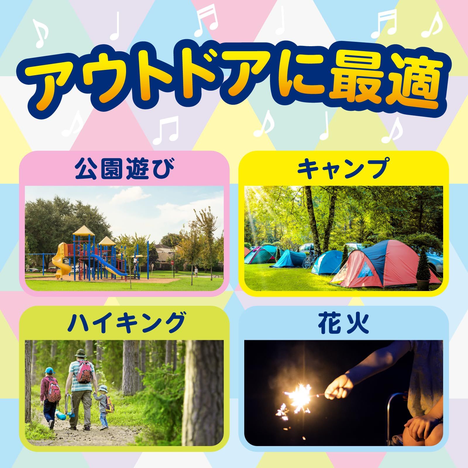 【用途例】おでかけ、公園遊び、キャンプ、アウトドア、ハイキング、釣り、花火など様々な場面でご利用頂けます。