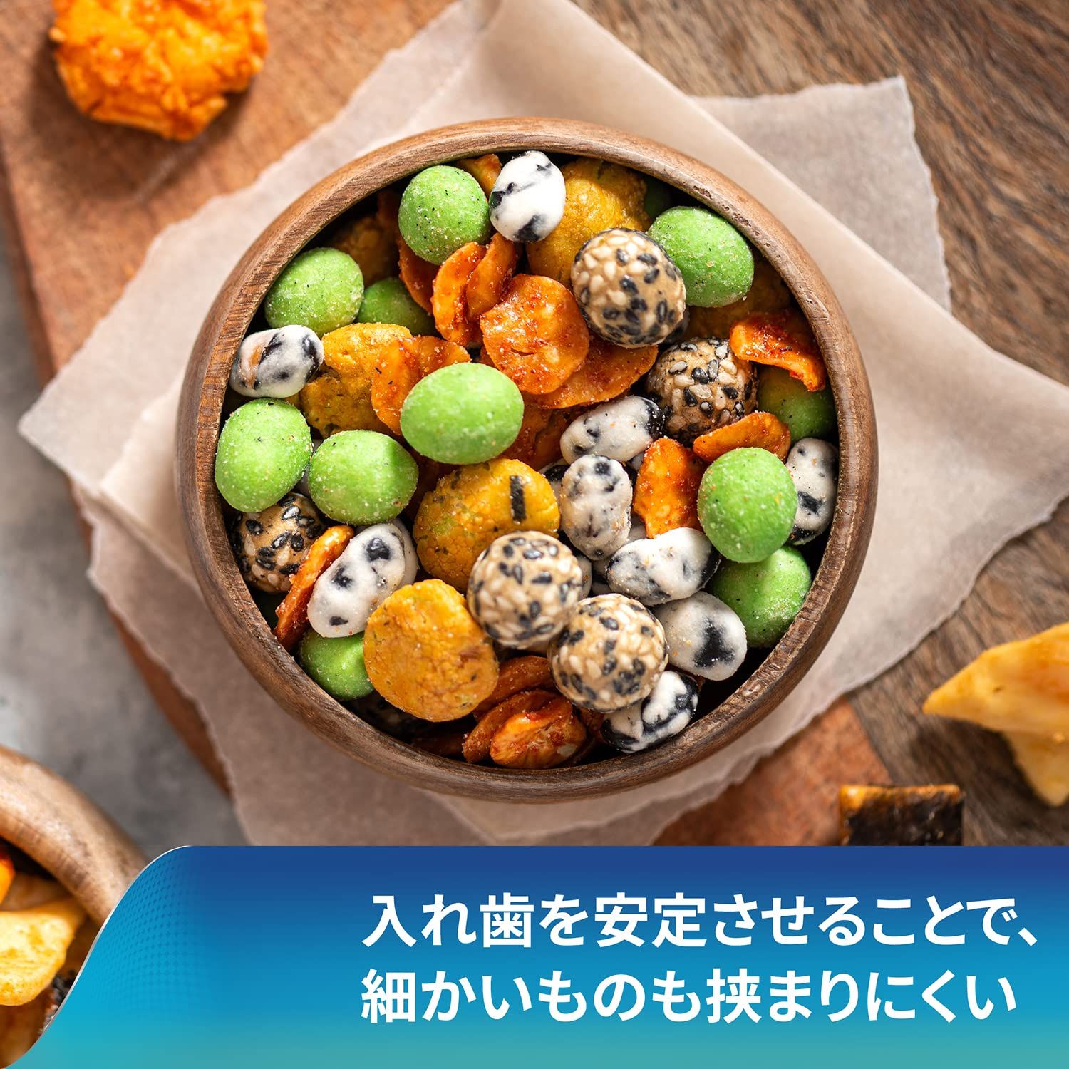 4.入れ歯を口にはめ込み、1分間ほど軽く押さえてください。※新ポリグリップ極細ノズル メントール配合は、だ液などにより徐々に溶けながら粘着力を発揮するクリームタイプです。※金属床の入れ歯にも使えます。※入れ歯の形、大きさによってご使用いただけないことがあります。※塗布量は入れ歯の大きさや形、また、適合状態(入れ歯と歯ぐきのすき間の程度等)により違いますので、使用経験により適量をお決めください。