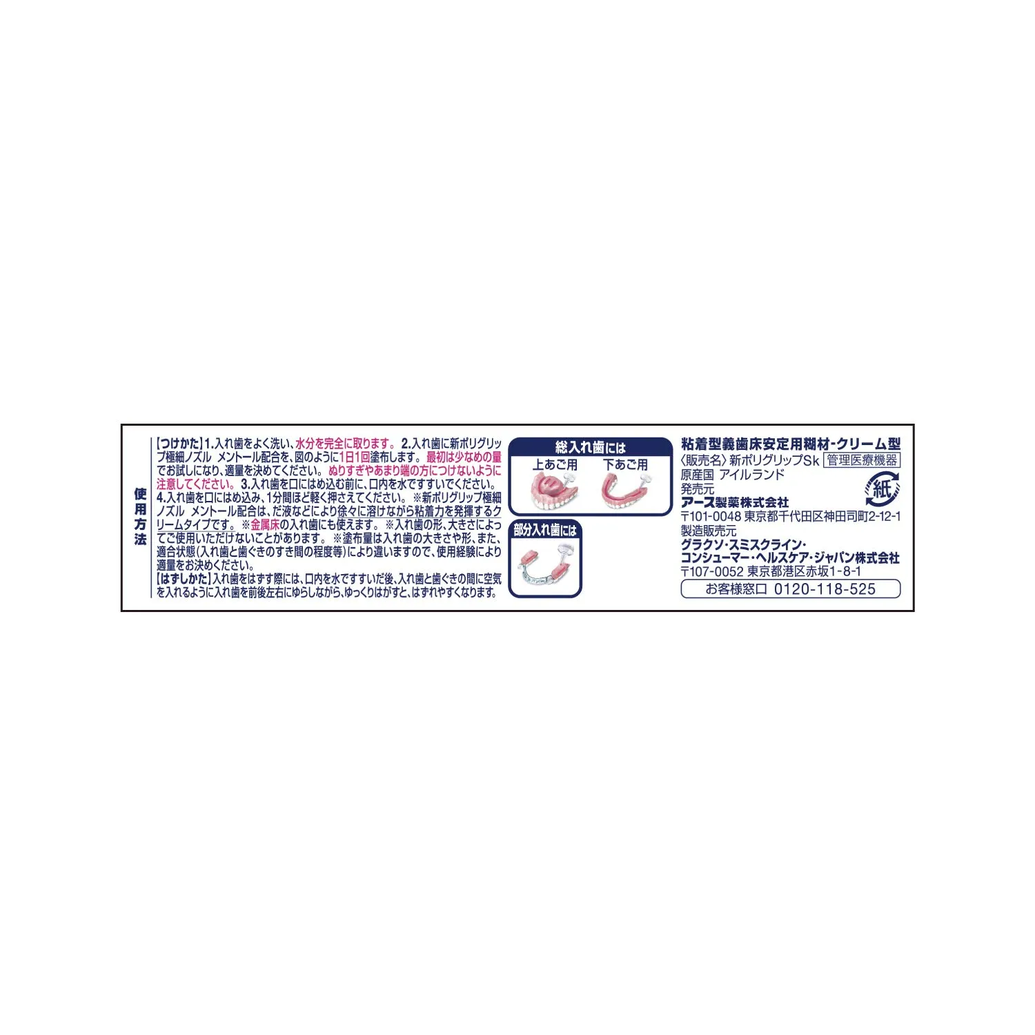 2.入れ歯に新ポリグリップ極細ノズル メントール配合を、1日1回塗布します。最初は少なめの量でお試しになり、適量を決めてください。ぬりすぎやあまり端の方につけないように注意してください。