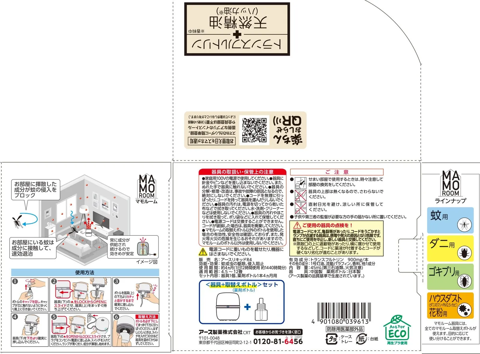 【マモルームラインナップ】蚊用・ダニ用:取替え時には、どのボトルでもお好みに応じて使えます。