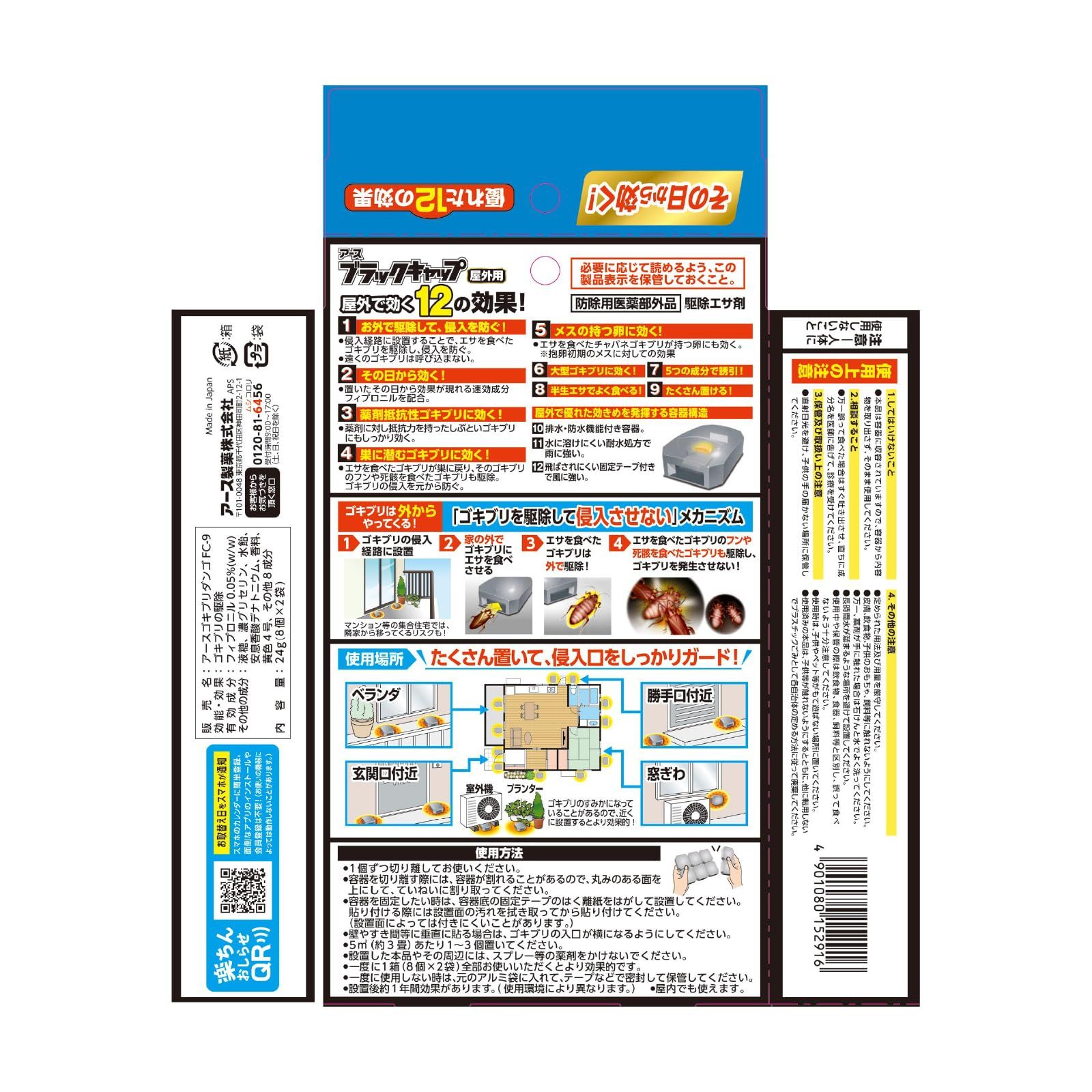 ●優れた12の効果でメスの持つ卵、薬剤抵抗性ゴキブリ、巣のゴキブリにも置いたその日から効きます。風雨に強い屋外用です。ゴキブリ用駆除エサ剤