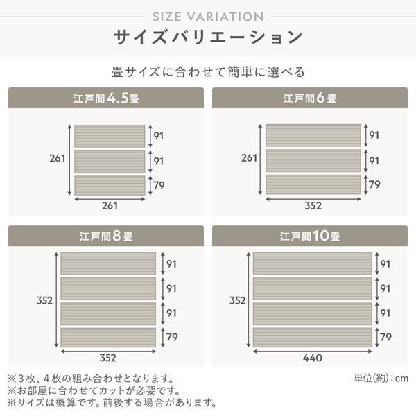 江戸間4.5畳用:261cm×261cm(91cm×261cm 2枚、79cm×261cm 1枚)