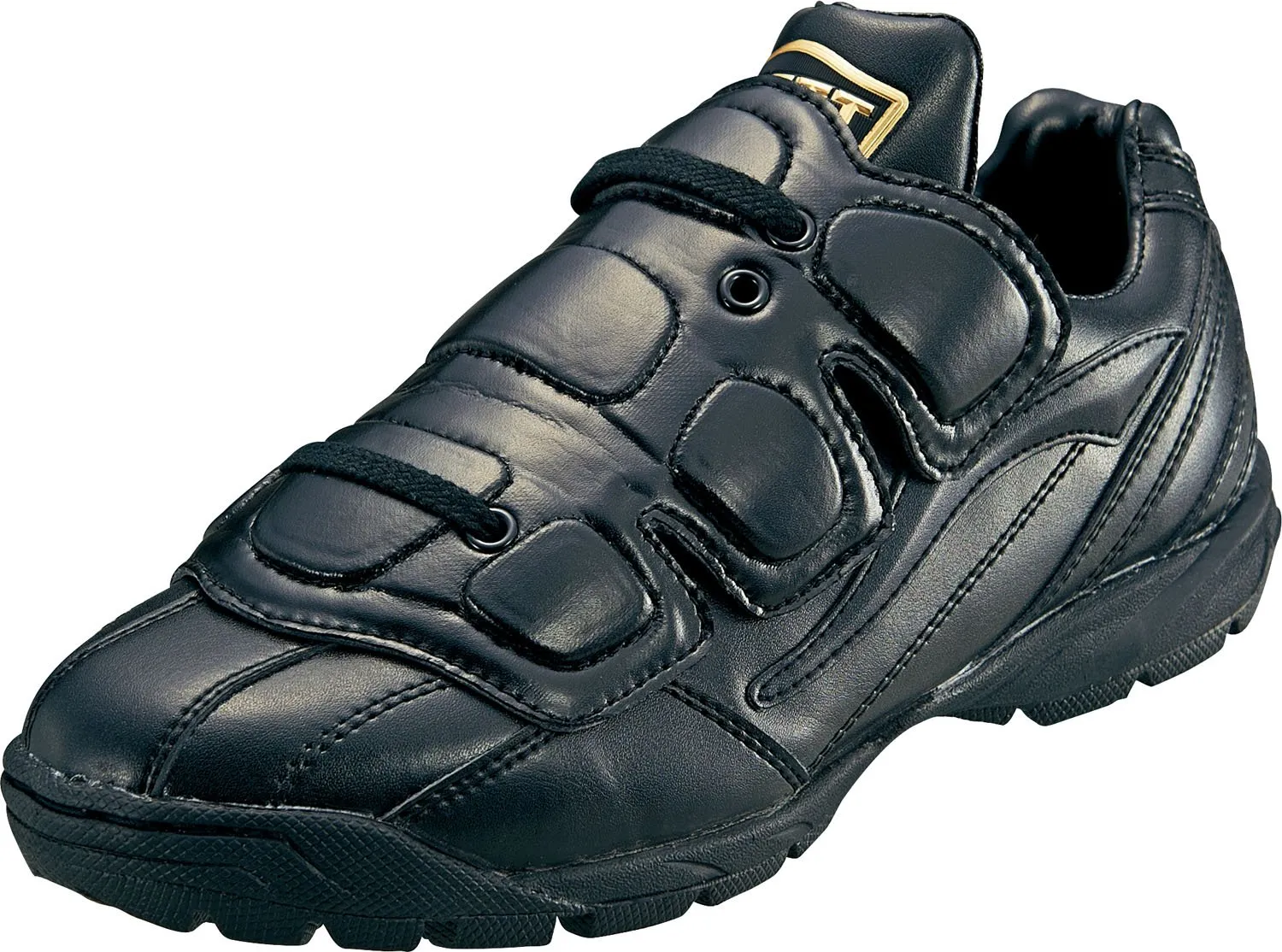 球審、塁審兼用のアンパイアシューズ。足甲の保護パーツが取り外しが簡単にできるモデル。