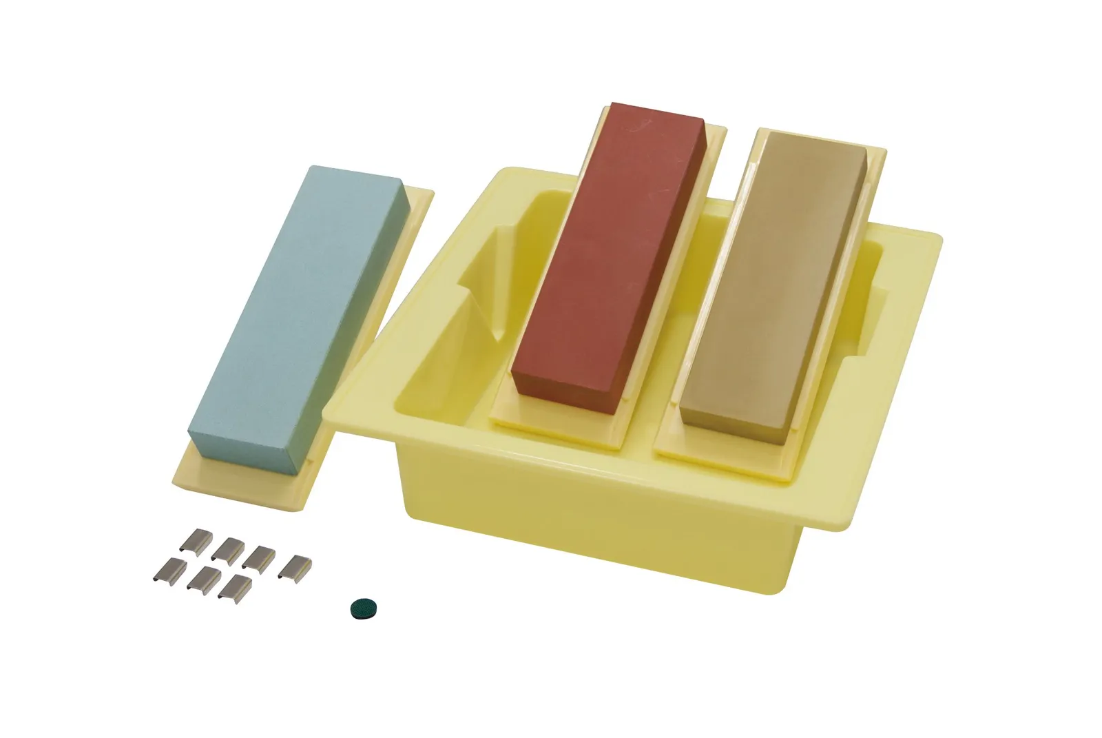 セット内容:荒砥石・中砥石・仕上砥石・研ぎ桶・クリップ7個・桶滑止め5個