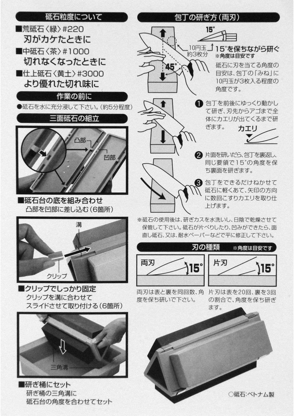 ※作業の前に、砥石を水に充分浸して下さい(約5分程)。