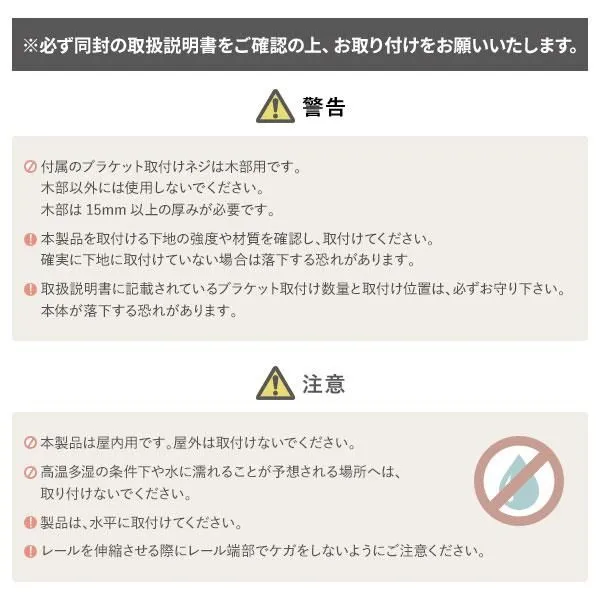 ・本製品を取付ける下地の強度や材質を確認し、取付けてください。