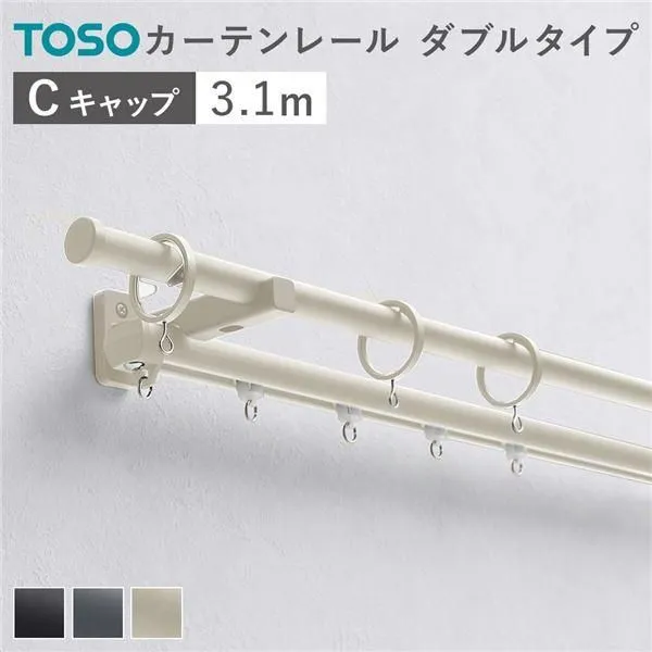 商品名:カーテンレール ダブルセット (正面付) 3.1m ラテホワイト Cキャップ 日本製 設置簡単 取付簡単 生活雑貨 インテリア雑貨