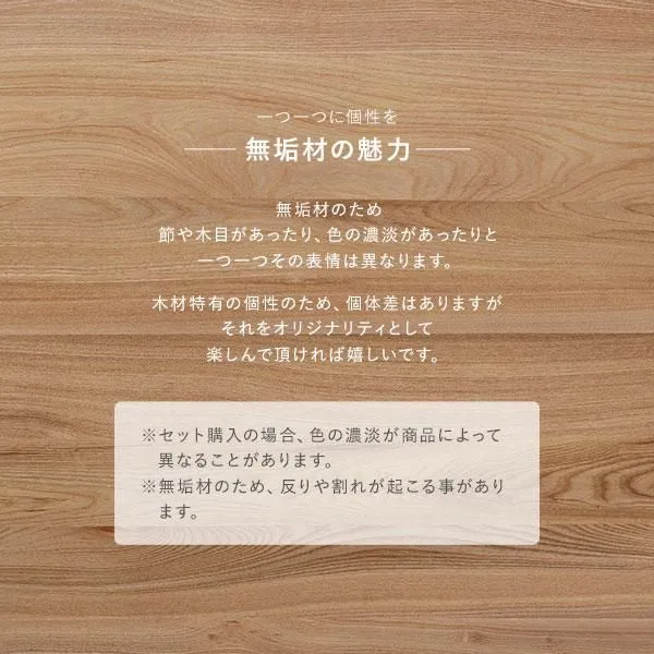 無垢材のため節や木目があったり、色の濃淡があったりと