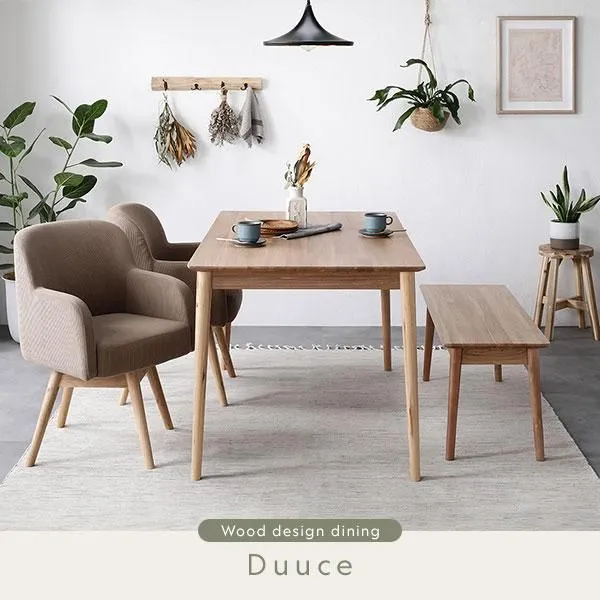 ■4点セット(ダイニングテーブル幅140cm+ベンチ+回転チェア2脚) 回転チェア:キャメル