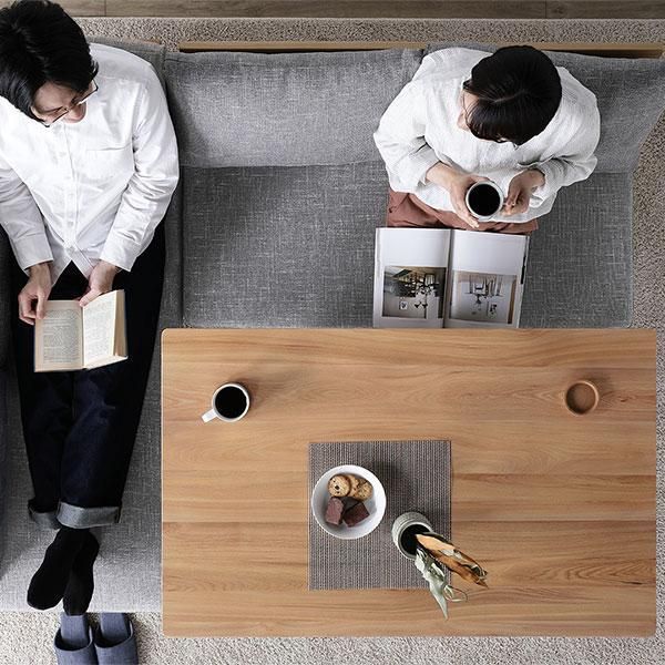ニレの無垢材をたっぷりと使った優しい雰囲気が魅力のソファダイニング。