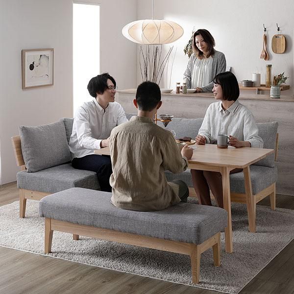 ベンチ:張り材:ポリエステル100%/クッション材:ウレタンフォーム/構造部材:天然木(ニレ)/表面加工:ウレタン樹脂塗装