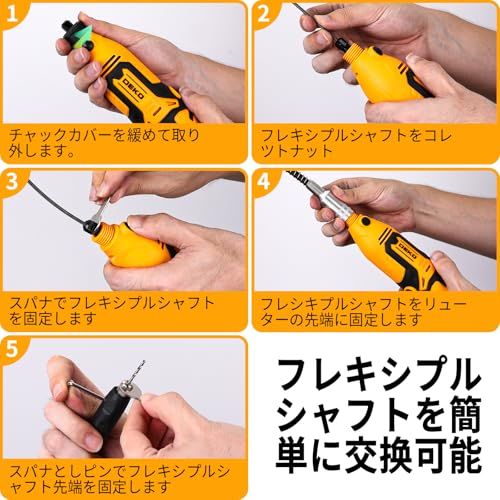 【便利なソフトシャフト】ミニリューターは高品質の銅製ソフトシャフトが付いてるので、柔軟性と安定性を兼ね備え、簡単に研磨、彫刻などの作業を行うことができます。よりラクかつ簡単にハードチューブ、インターフェースやコーナーなどを処理することができます。