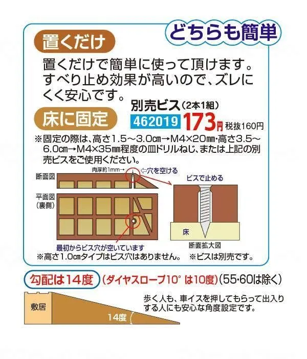 ○段差解消スロープに最適なダイヤカット形状です。