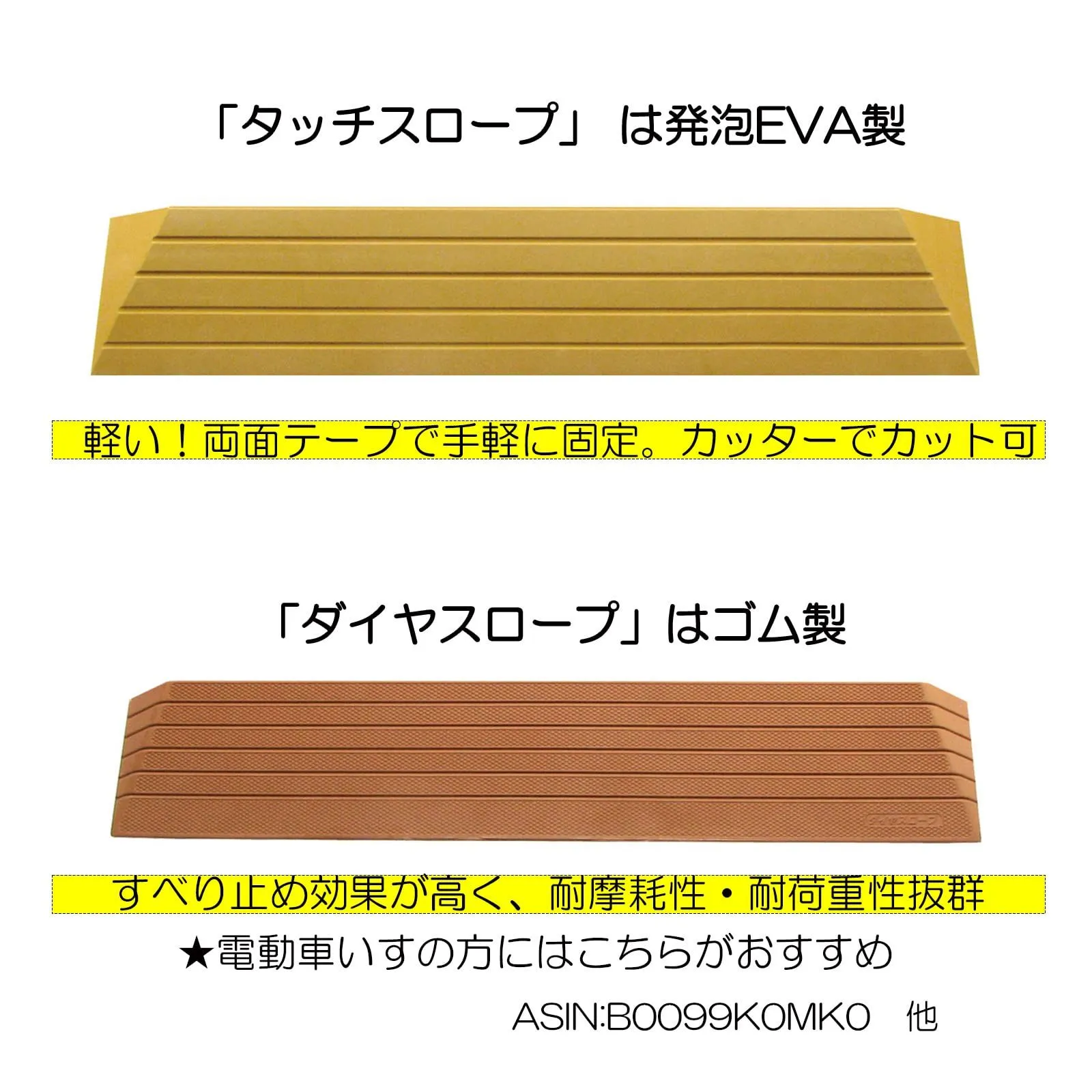 ○ゴム製スロープはクッション性があり、車イスの走行時には車輪の振動を吸収し、体にショックを与えません。