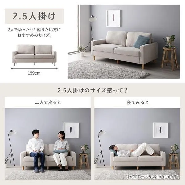 2.5人掛け:幅159×奥行72×高さ73.5cm(脚高さ:12cm)
