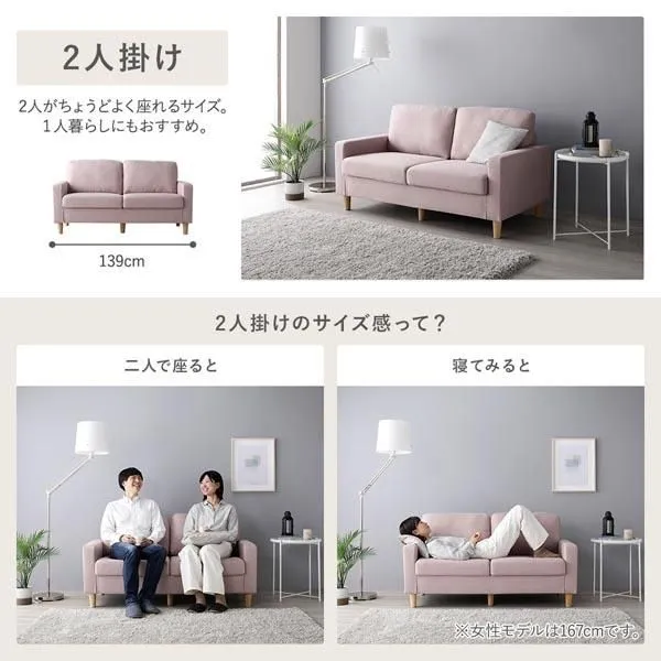 2人掛け:幅139×奥行72×高さ73.5cm(脚高さ:12cm)
