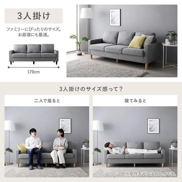 3人掛け:幅179×奥行72×高さ73.5cm(脚高さ:12cm)