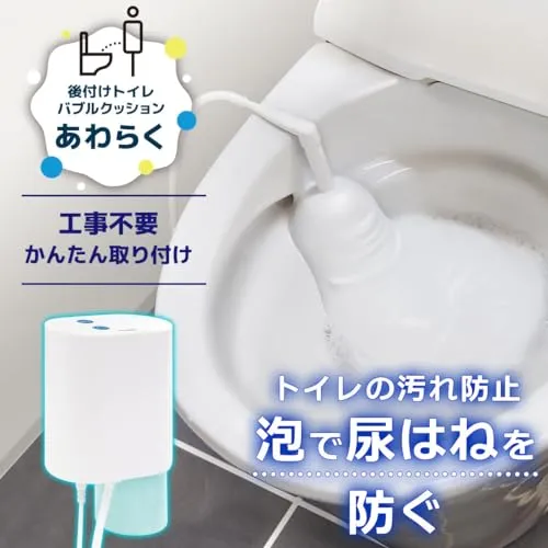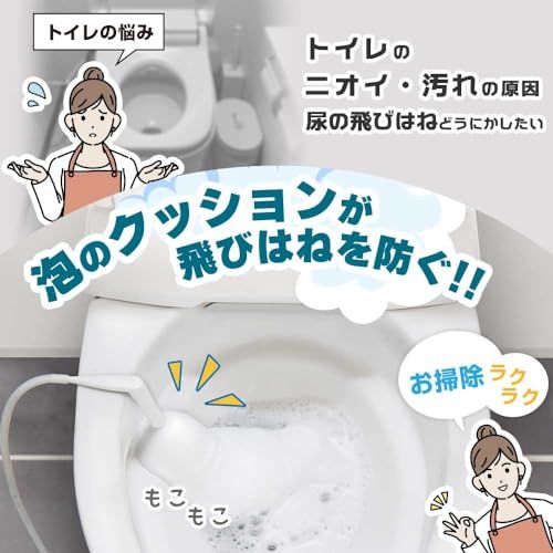 【泡のクッションで尿の飛びはねを抑えます。トイレに簡単後付け、タンクから給水するタイプの泡洗浄機】 ご自宅のトイレに後付けで設置できる泡洗浄機です。 もこもこ泡のクッションで、トイレのニオイや汚れの原因である尿の飛びはねを抑えます。 ボトルに中性洗剤を入れておくだけ。 トイレ掃除が今までよりもずっと楽になります。