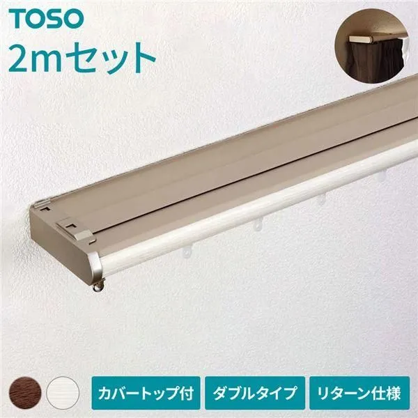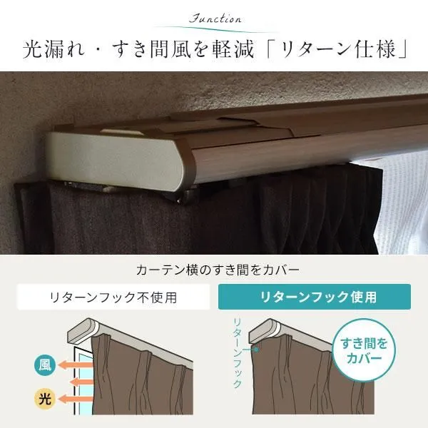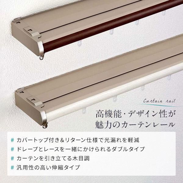 商品名:伸縮 カーテンレール 〔2m セット 木目ホワイト〕 カバートップ付き ダブル リターン仕様 リネアカバー 遮光 木目調 光漏れ防止