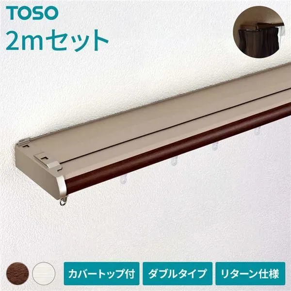 商品名:伸縮 カーテンレール 〔2m セット 木目ブラウン〕 カバートップ付き ダブル リターン仕様 リネアカバー 遮光 木目調 光漏れ防止