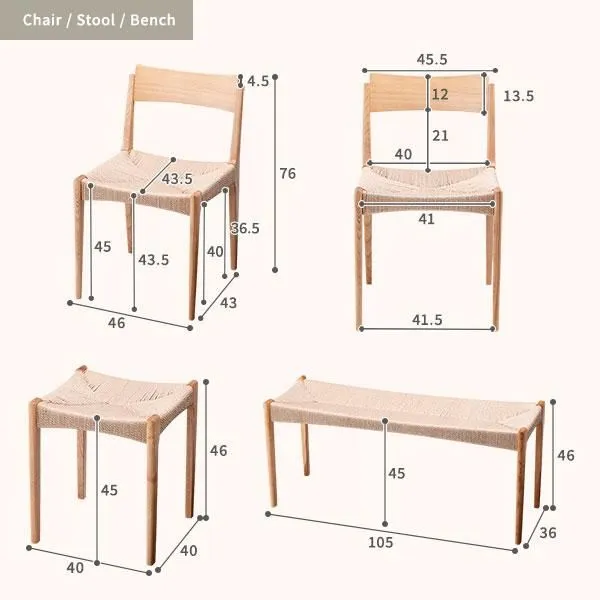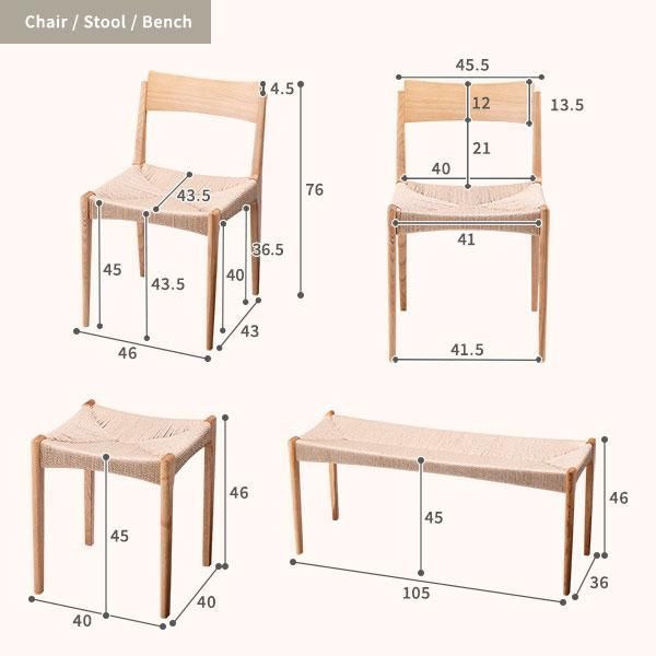 チェア・スツール・ベンチ:天然木(アッシュ)、ウレタン塗装、ペーパーコード