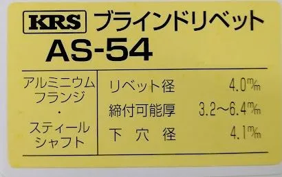 アルミ ブラインドリベット AS-54 100本 リベット径:4.0mm 下穴径:4.1mm 締付可能厚:3.2~6.4mm 希望数量や他の商品との組み合わせがありましたら質問からお気軽にお問い合わせください。 新たに商品ページを作成します。 ショップのすべての商品の上の方に表示されます。 ご購入頂けない場合もご返答は不要です。