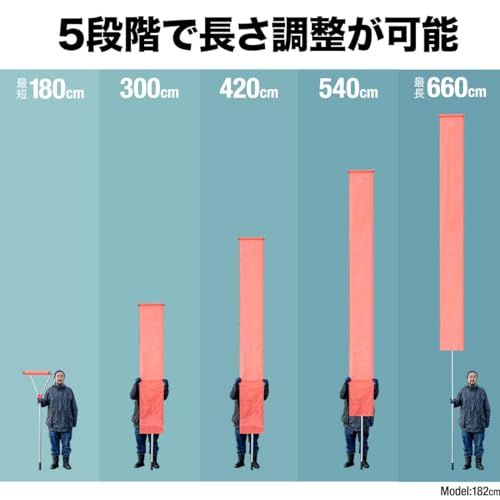 【最大(約)6.6mまで伸ばせる! 5段階で長さ調整が可能】 こちらの雪下ろし棒は5段階の長さ調節が可能。使いたい場所に合わせて変更できます。