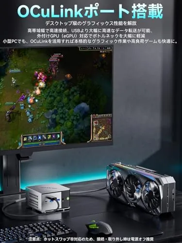 【OCuLink & USB4 搭載、外部拡張にも柔軟に対応】GMKtec M8 ミニPC は、OCuLinkポート を搭載し、高速eGPU接続に対応。デスクトップクラ