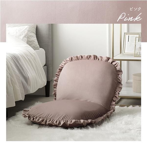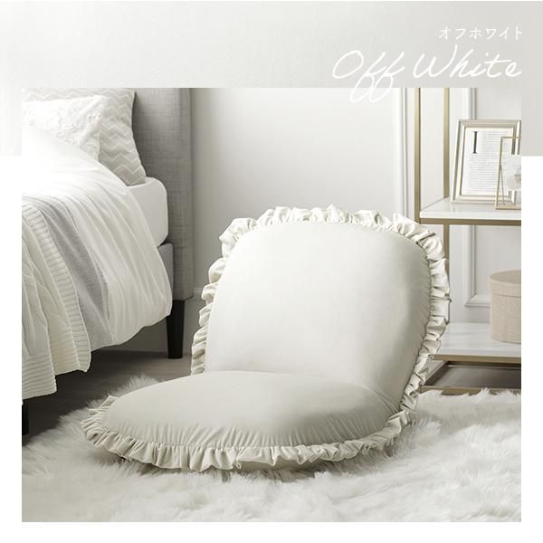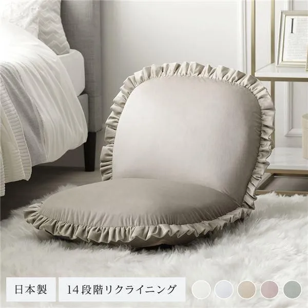 商品名:座椅子 ベージュ リクライニング 日本製 コンパクト フリル付き ニュアンスカラー フロアソファー フロアチェア