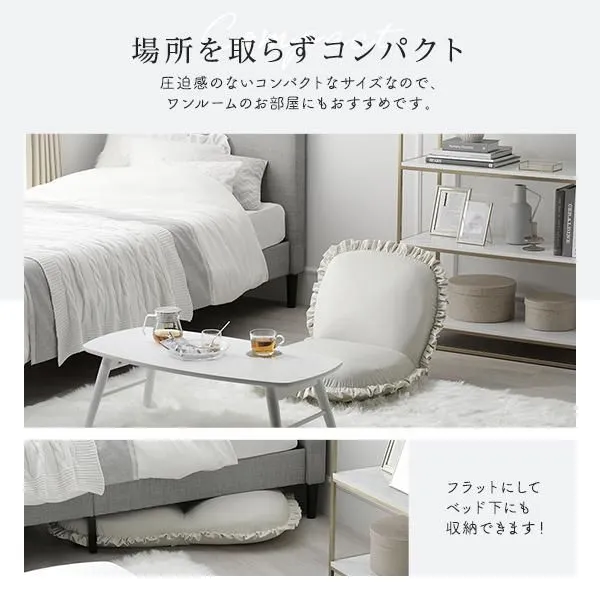 【商品名】 座椅子 ベージュ リクライニング 日本製 コンパクト フリル付き ニュアンスカラー フロアソファー フロアチェア