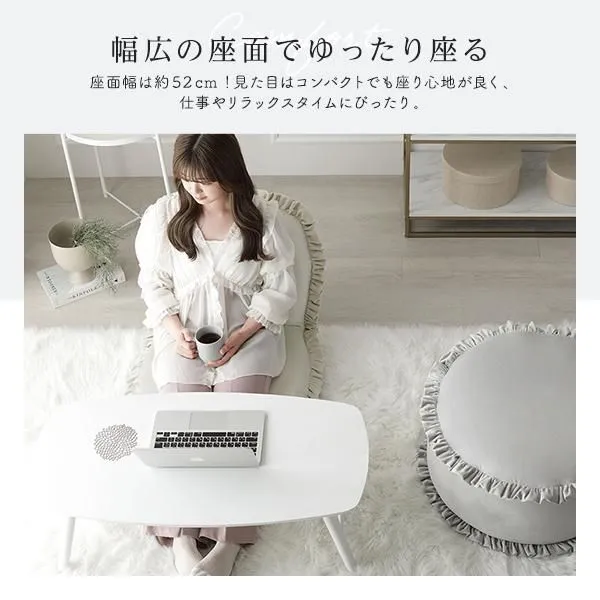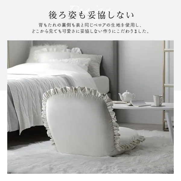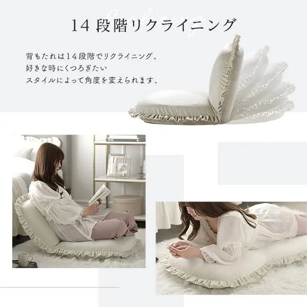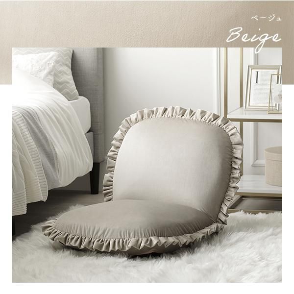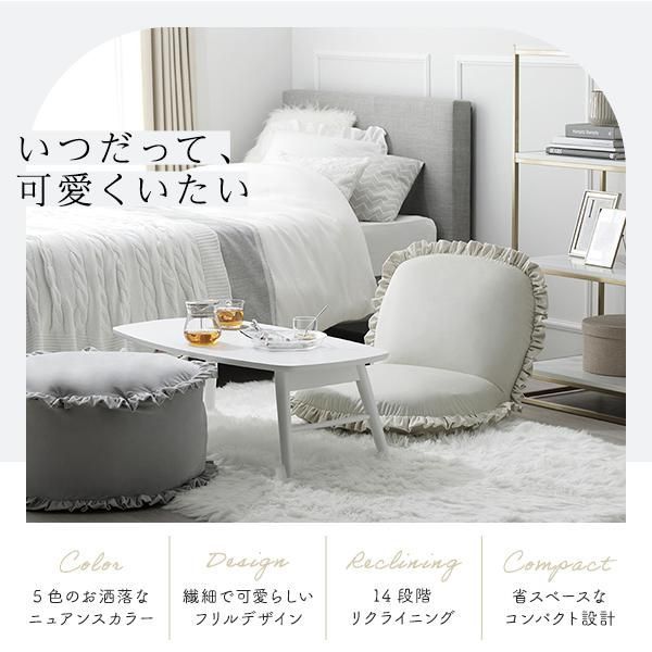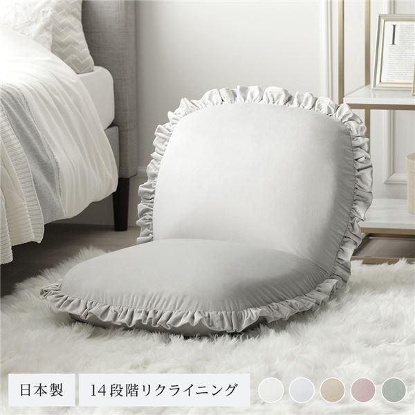 商品名:座椅子 パールグレー リクライニング 日本製 コンパクト フリル付き ニュアンスカラー フロアソファー フロアチェア