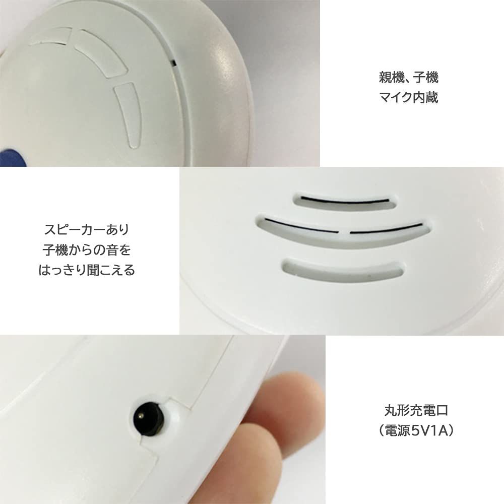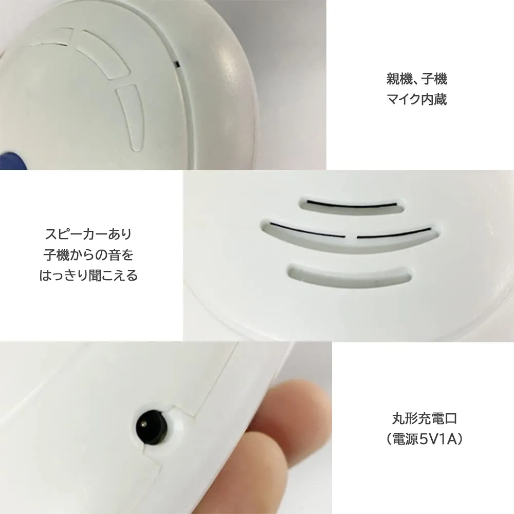 初心者にも簡単に操作できる、複雑な設定が要らずに使用可能な音声ベビーモニター。 乾電池を使用して持ち運びにも便利です。 親機のボタンを押せば通話できます、遠距離でも声掛けができます。 小型で丸みを帯びた可愛いデザイン。 お子様の見守り以外にも、ペット、老人介護、トランシーバー代わりになどさまざまな場面にも活用。 出産祝いのプレゼントとしても大人気。