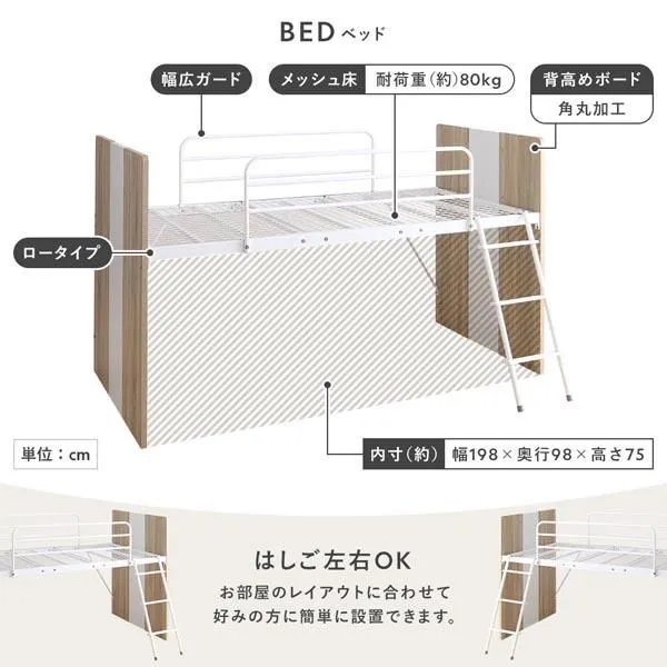 ベッド:幅102×奥行203×高さ118.5cm(床面高:81cm)・52kg