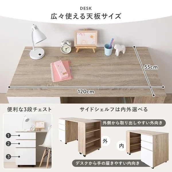※こちらは『システムベッド3点セット(ベッド+デスク+ワゴン)』の商品ページです。マットレスは別売りです。
