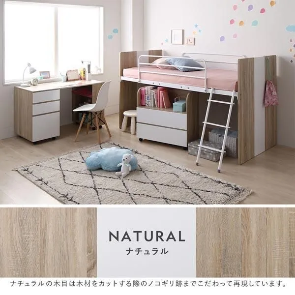 ■システムベッド3点セット(ベッド・デスク・ワゴン)+マットレスセット ナチュラル