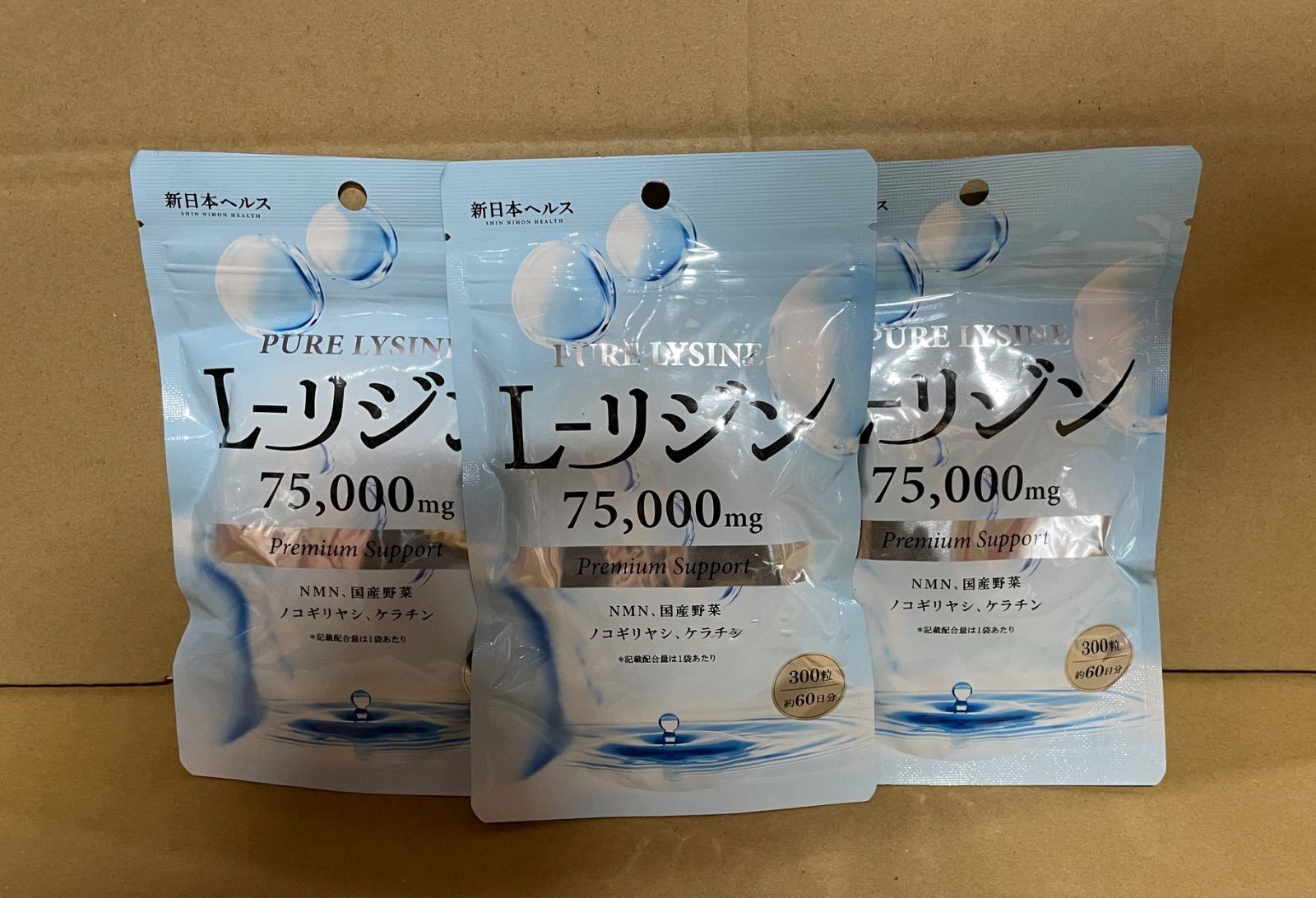 PURE LYSINE リジン サプリ 75,000mg (1日あたり L-リジン1,250mg配合) L-LYSINE 300粒 約60日分 ビタミン11種 国産野菜 ノコギリヤシ NMN ケラチン GMP国内工場製造 サプリメント 新日本ヘルス