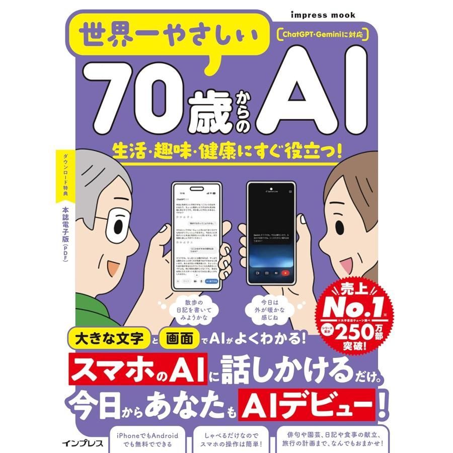 本書『世界一やさしい70歳からのAI 生活・趣味・健康にすぐ役立つ!』は、そうした不安をやわらげ、“AIがはじめての方”のために作られた、シニア向けのいちばんやさしい入門書です。