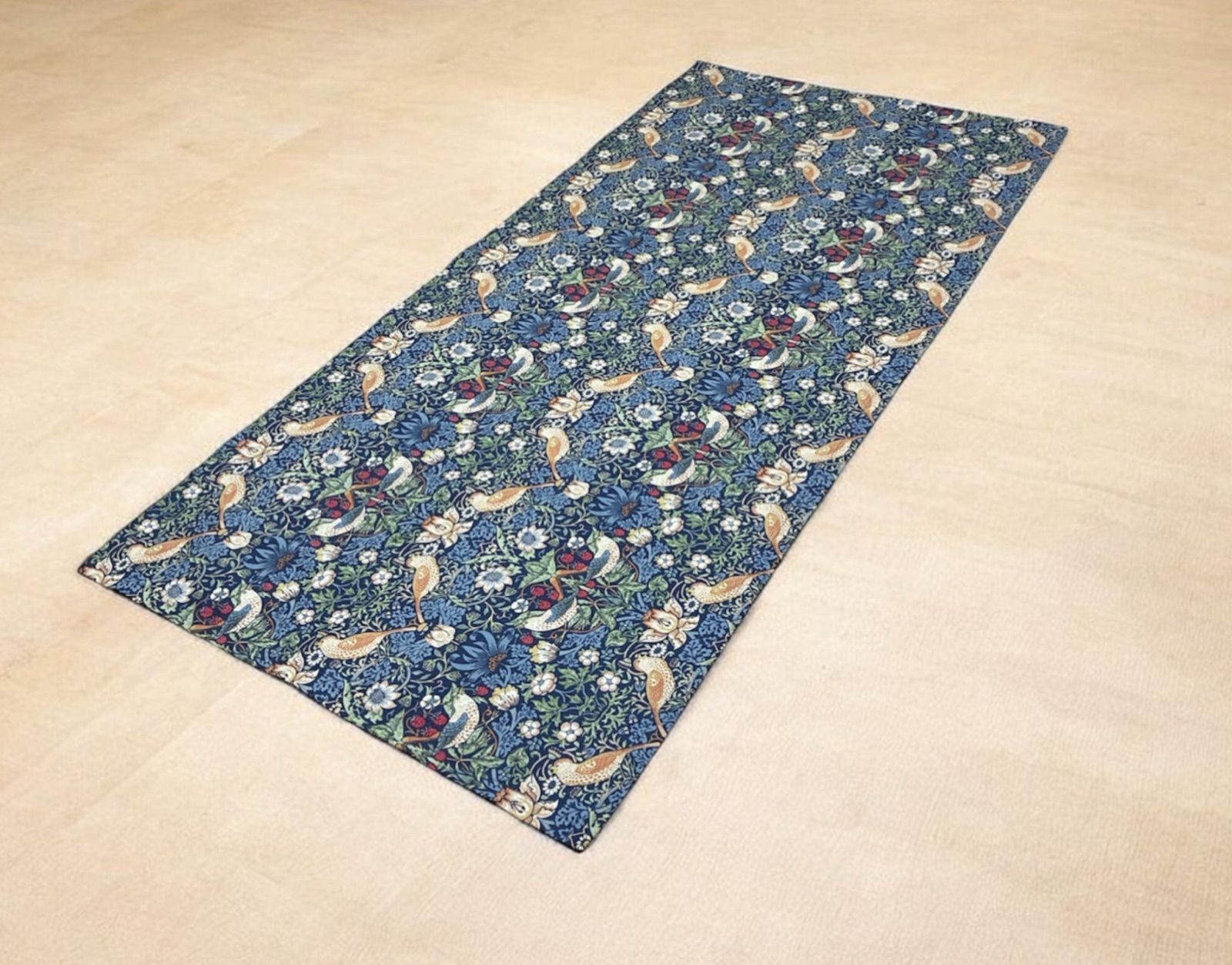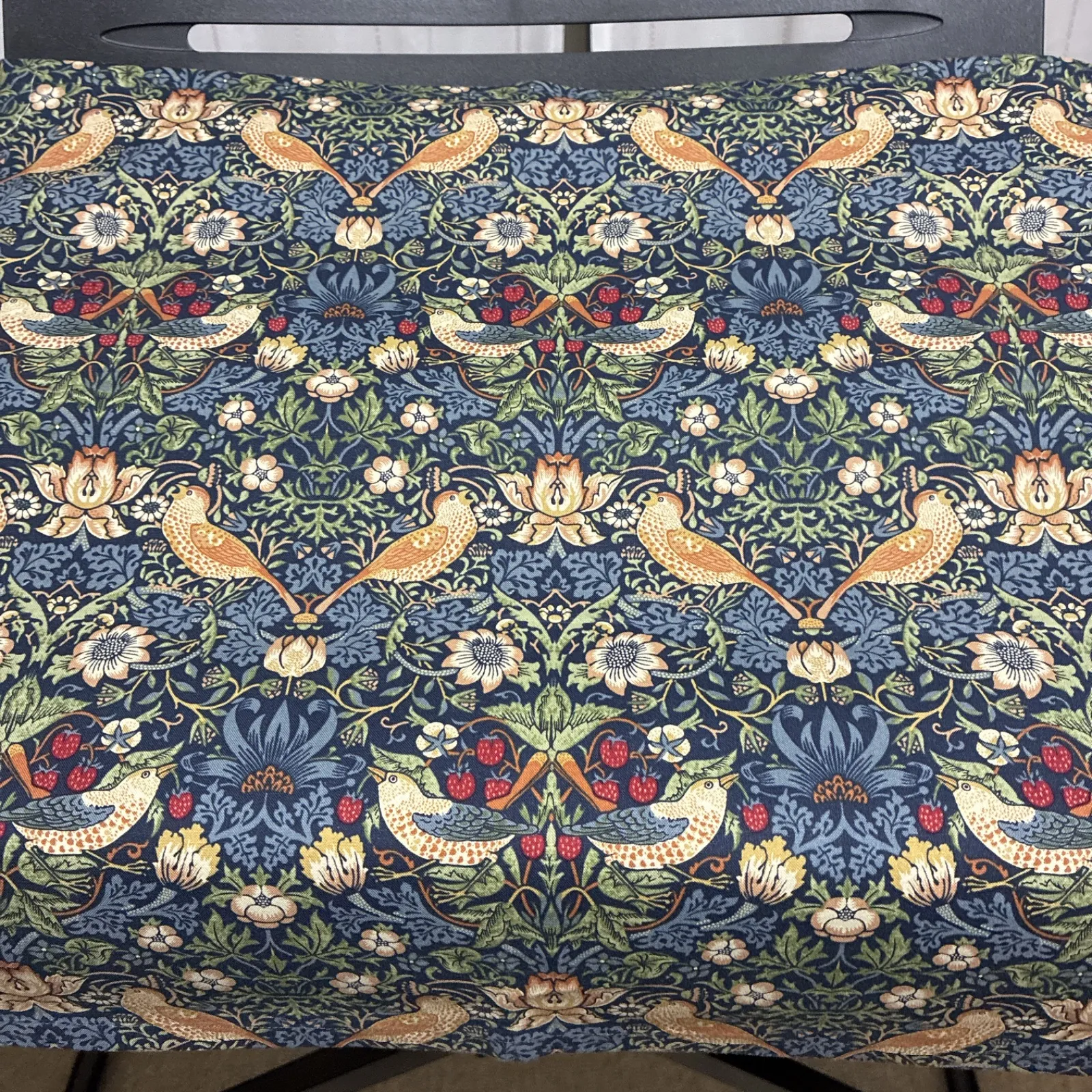 ネイビーを基調に「鳥の白」と「いちごの赤」が目に映えるモリス柄です。