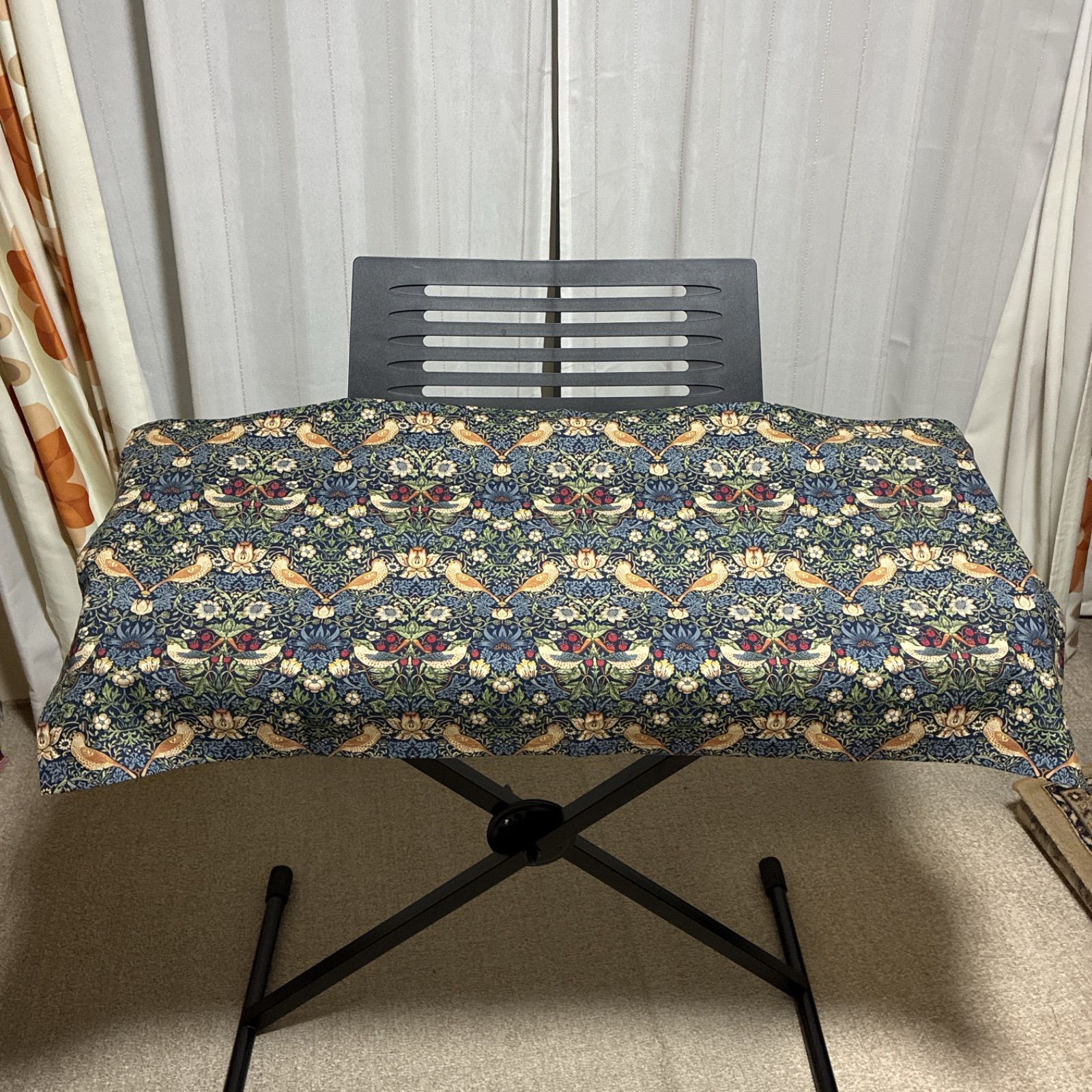 #キーボード#楽器#61鍵#カバー#ピアノカバー#ウイリアムモリス#いちご泥棒#ネイビーブルー#いちご#鳥#赤#電子ピアノ#花柄#大人の習い事