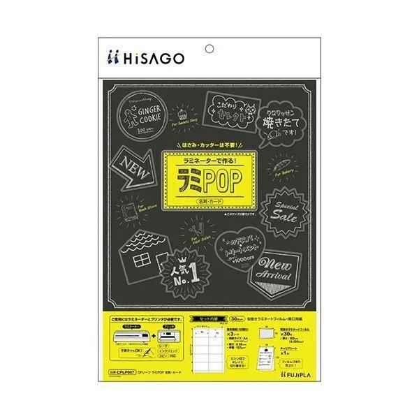 商品名:(まとめ) ヒサゴ フジプラ ラミネートフィルム CPリーフ ラミPOP 名刺・カード CPLP007 1パック(30枚) 〔×3セット〕
