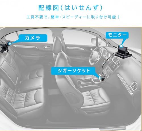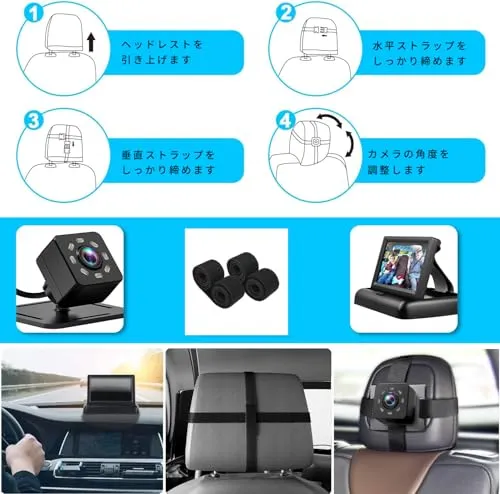 3.簡単取り付け&手軽な操作 ヘッドレストへの取り付けは数分で完了。工具は不要です。電源コードを12Vシガーソケットに差し込み、液晶モニターをセットするだけで自動でオンになり、後部座席の赤ちゃんをすぐに確認できます。