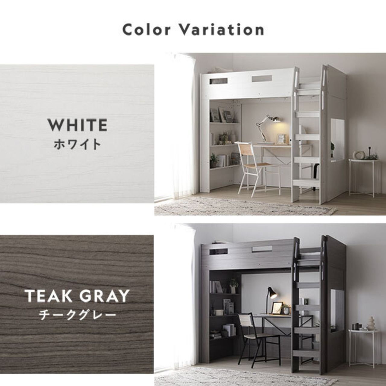 チークグレーの落ち着いた木目で、部屋の雰囲気まで整うロフトベッドです。