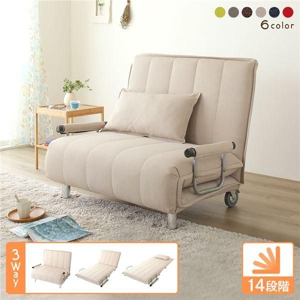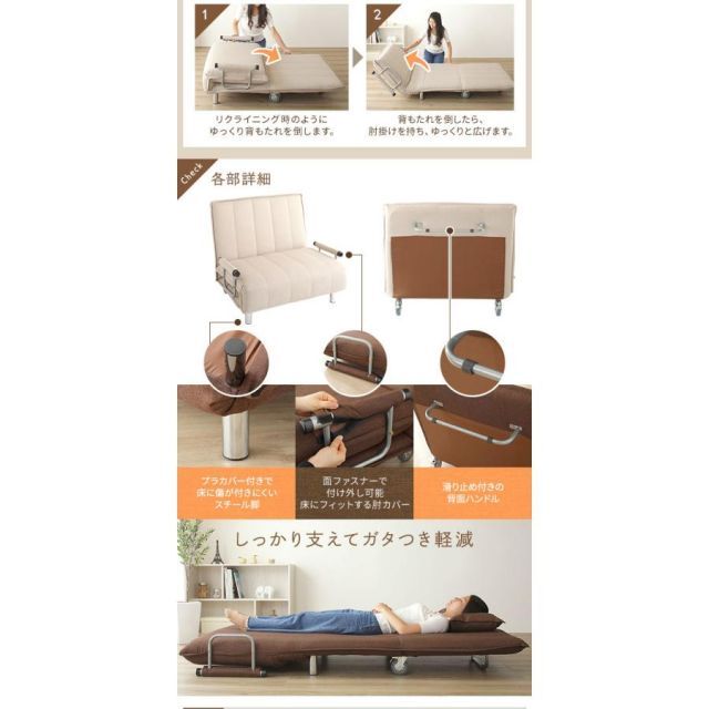 商品名:ソファーベッド 約幅101cm ベージュ 折りたたみ式 リクライニング キャスター 肘付き 3way カウチソファー リビング